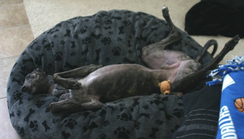 Dolce Gambino (formerly Lee) walked into our house on March 21st and immediately stole our hearts ... and our bed. He is a fast learner, conquering our curved staircase on his first attempt. Dolce is a sweet boy who loves walks, car rides, food and cuddling. He is a master at dismembering stuffies. Dolce's boundless energy wears out his parents with his twice daily "walks," which mostly consist of exploration, jogging, and critter tracking.