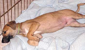 In the evening it was time to have Mother Trixie meet her new foster mom. I felt like I was doing something illicit meeting Buffy in the Container Store parking lot to hand off Trix. Buffy was so happy to get Trixie and taught her how to jump into the back of her SUV. (I didn't know that trick either!) The ride back home was quite sad. Ashley cried along with us. She was crying because she didn't want to be cooped up in the crate. We're glad that Trixie will be in a place where she can concentrate on getting stronger and healthier.