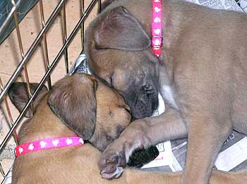 At 9 1/2 weeks old, the puppies are growing by leaps and bounds. Literally, they grow as they leap and bound. In fact that's all they seem to want to do. Luke, Tank, and Tony are all in foster homes and I still have Ashley and Cole. Cole was just adopted today by our good friend, Kathy H. from Houston (she also adopted Whist - now Whisper- from GALT). He is such a fabulous puppy and she is such a wonderful new mom. Right now they are sleeping in each other's arms after a full day of running and swimming (on Cole's part) and photo taking (on Kathy's part). They head back to Houston tomorrow.