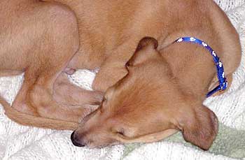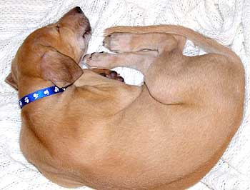 Ashley is to be visited by some friends from California tomorrow. She too is no slouch in the running and playing department. The two of them ran and played so hard today she went by herself into her pen to sleep for the night (a first!). She is the much better swimmer of the two and it doesn't bother her to put her head under water and blow bubbles. A real water baby that one!