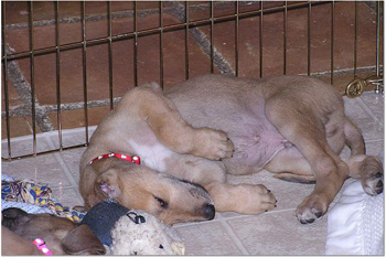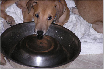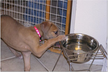 Now you'll know who's who in photos. Here's today's highlights: The girls have discovered that their water bowl is great to put their feet in while they drink. Guess they're wanting pedicures. The boys never do this. Ashley and Tank are usually the last ones down. They will play and play, even trying to wake up the sleeping pups for more action. Ashley finally goes down but Tank hangs in there, waiting for more fun. He should be the skinniest puppy for all of his energy. Guess he uses that extra food to keep him going longer.