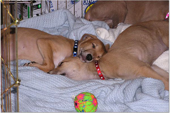 Luke and Tank were picked up by Pam K. They were quite cuddly (for 3 minutes) and then started to squirm because they had things to do - tails to chew, ears to nibble and noses to bite. They happily went in the van to go on to meet some new doggie friends and human companions.