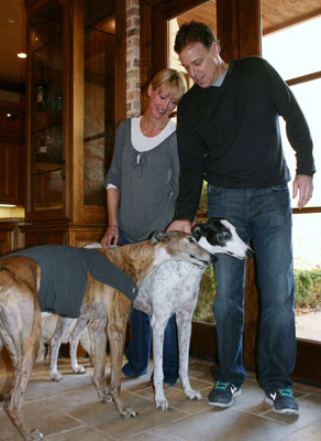 Over the years, Jenny had read numerous articles about the plight of greyhounds after the ends of their racing careers. She and Chuck were thrilled to hear about the many adoption and rescue groups that had been started in recent years to bring awareness to this problem and provide a safe haven for former racers and other greyhounds in need. Shortly after Hank's death, Jenny read an article about Monica's Heart, a greyhound adoption agency in Altoona, Pennsylvania. After giving the idea careful consideration, Jenny and Chuck decided to expand their family by opening their home to a greyhound - but Tyler was not their first choice!