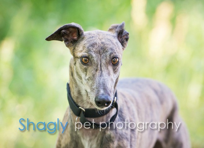 BeeBee is such a sweet girl! She is very shy and tends to warm up to women faster than men (adults and children). Once she knows that you are okay, she is super excited to see you but never jumps on you. You can almost see that she is holding herself back from jumping up on you. Her house manners are impeccable though she does like to counter surf which is a good trick for this petite girl. She walks so well on a lead that I would swear she's had some training. She stays with you, stops when you stop, walks when you walk and always waits for you to walk through the door first. She likes to sleep in her crate but we have stopped closing it at night because she is so well behaved. Her crate is right next to our other greyhound's crate. They are so good together. They do have separate food and water bowls and they never fuss over food or territory. She is not allowed on the furniture in her foster home and she is perfectly fine with that. There are lots of beds on the floor to keep her comfy. I am sure she will find her forever home very quickly.