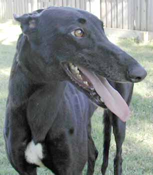 Lili, aka DOX Lili, is a small black female with only a tiny white tux on her chest and a smidgen on her hind feet. She was born April 20, 2000, and is sister to Loli and Tammy. Lili has a very outgoing sweet personality and is full of spirit. The three sisters received lots of hands-on attention growing up. Their sire was Class by Design and their dam was Gable Lolita, out of Wigwam Wag. After going off to schooling last November and then graduation, Lili was off to the Corpus Christi track, where she wasn't fast enough....so here she is, ready to race into someone's heart. Lili is cat friendly.