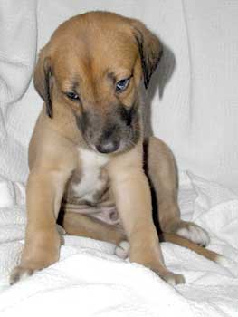 Trixie and Zorro were taken from horrid conditions by FWAC and picked up by GALT on May 1, 2007. Zorro was the only male on the confiscated premises. Trixie arrived heartworm positive, positive to Ehrlichia, and pregnant - however her pregnancy was not immediately detected because she was so thin. Within 2 1/2 weeks of her arrival, it was apparent after a sonogram that Trixie was carrying at least 6 puppies...and on June 5 she gave birth to 8 pups – 4 males and 4 females, but 2 females were stillborn.
